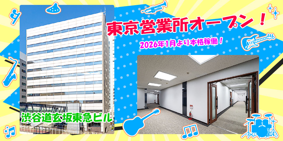 ミュージックカラー音楽教室は、2026年から東京都渋谷区に新事務所がオープンし、名称が「TOKYOミュージックカラー音楽教室」に変わります!令和最新のレッスンを東京から全国に発信していきます!