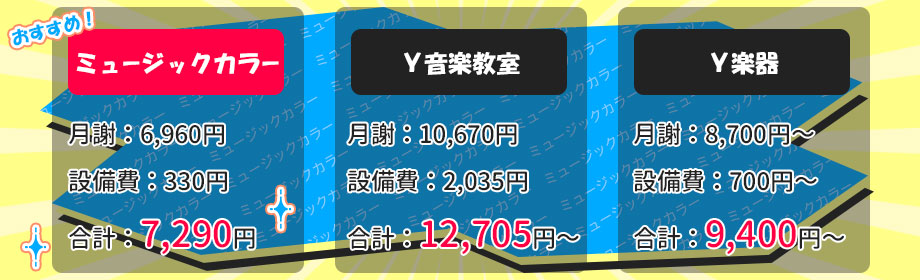 ※TOKYOミュージックカラー音楽教室が独自に調査した結果です。レッスン内容によってその他の料金が追加になる場合があります。