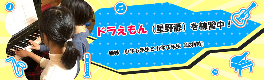 姉妹で通っています。いつもは別々にレッスンしていますが、連弾に挑戦してみたいとなって星野源さんの「ドラえもん」を練習しています!