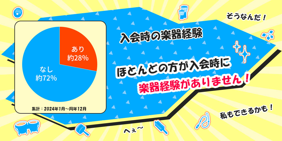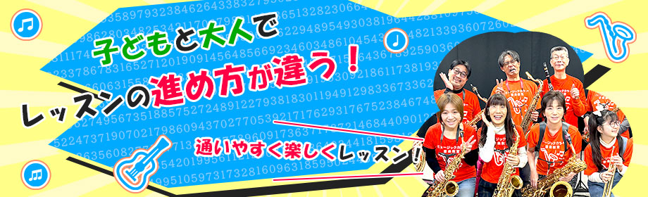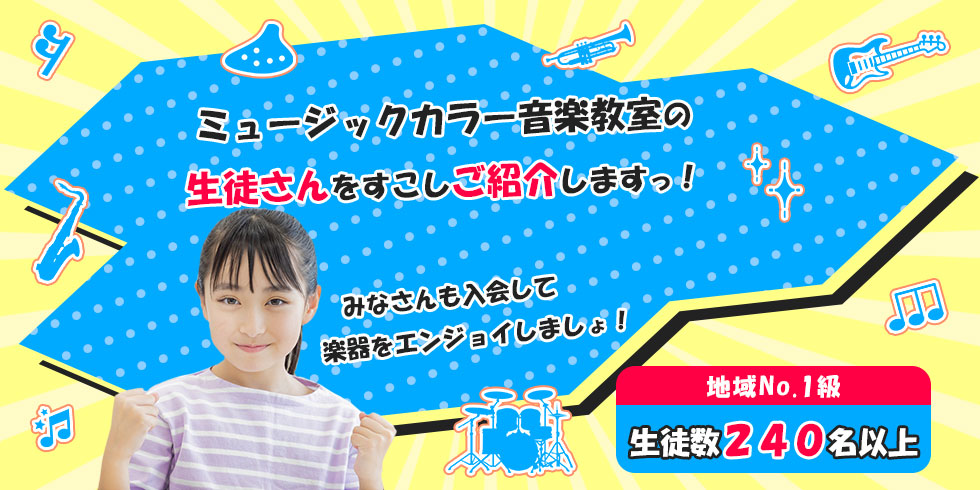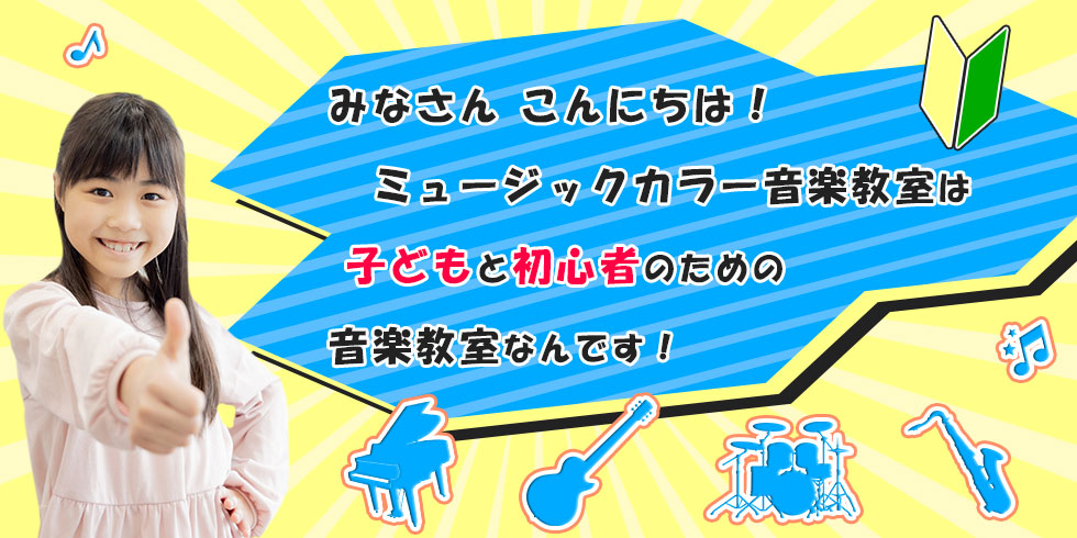 ミュージックカラー音楽教室の生徒さんは、楽器が初めての方や経験の浅い方が80%以上です!そんな子どもさんや初心者の方が安心して楽しく通うことのできる音楽教室です!