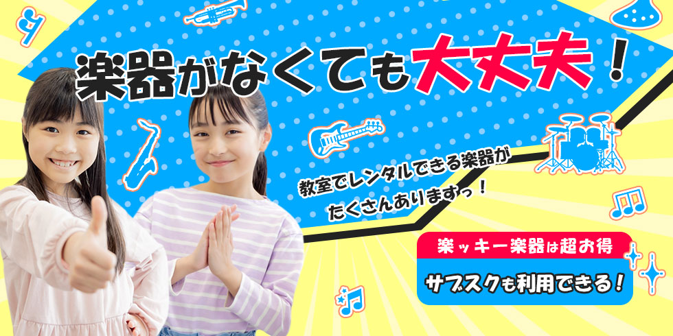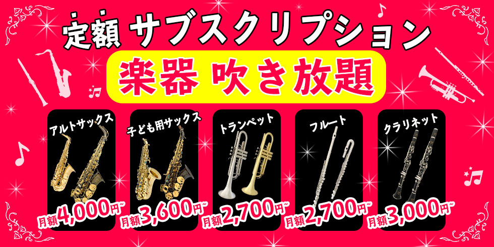生徒様限定の楽器の吹き放題「楽ッキー」サブスクリプションがスタート!新品かつ選定品の楽器をご用意します。これから楽器をはじめたい方にぴったり!