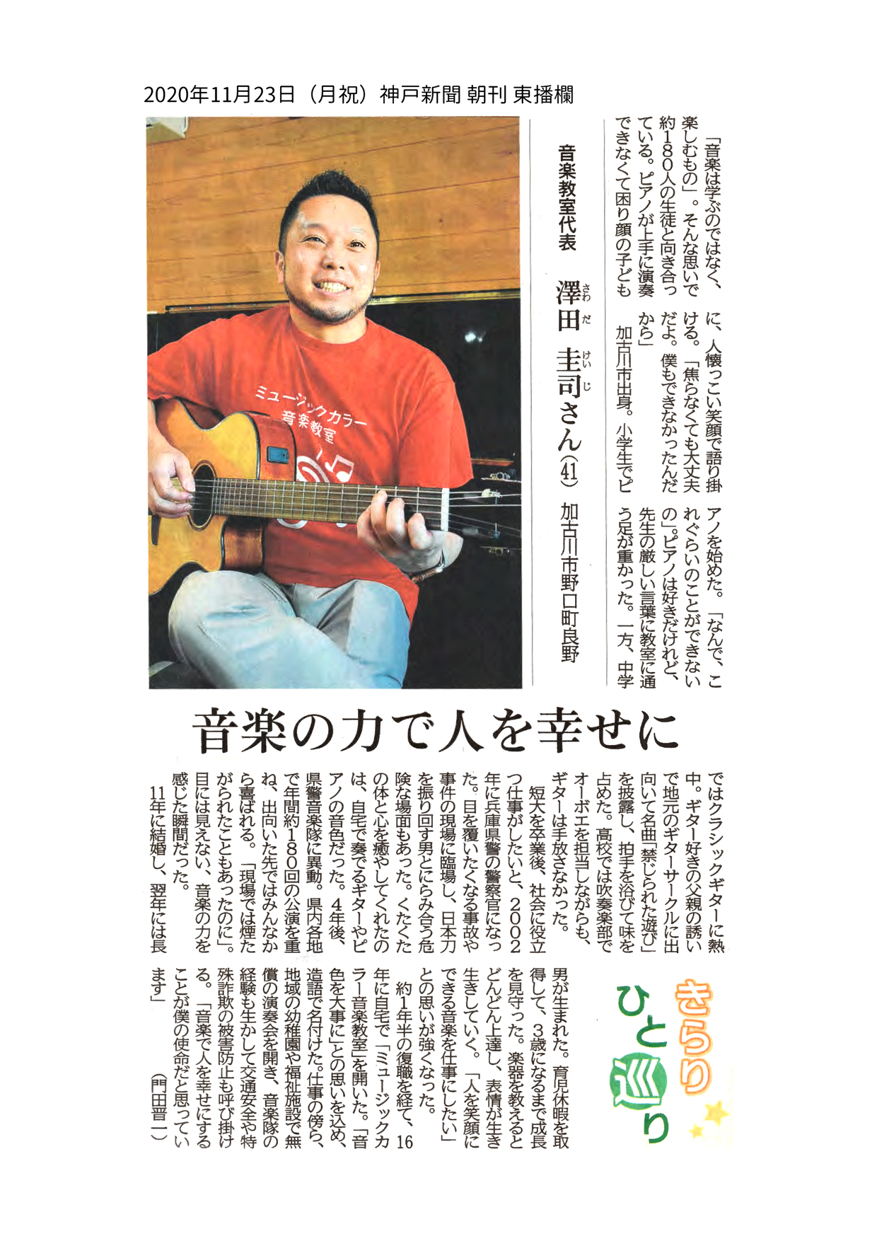 神戸新聞東播欄「きらりひと巡り」で代表の澤田圭司が大きく紹介されました。ほかにもテレビや地域の情報誌、ラジオなどで多数紹介されています!