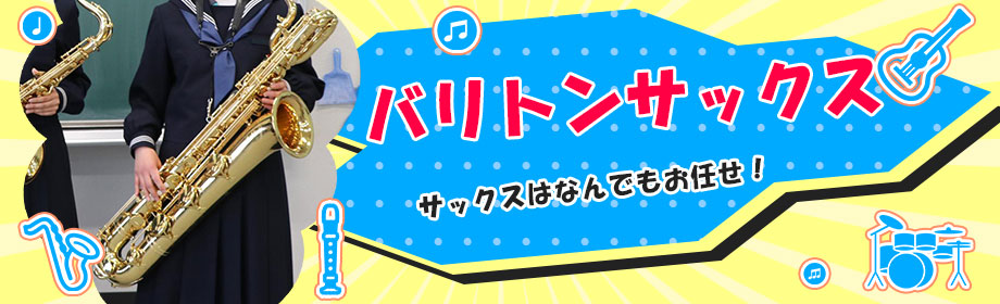 サックスは大きさによって、キッズサックス、ソプラノサックス、アルトサックス、テナーサックス、バリトンサックスに分かれています!一番大きいのがバリトンサックス!コツを覚えてカッコよく吹きこなそう!※教室には楽器がありませんので、生徒さんでご用意いただく必要がございます。