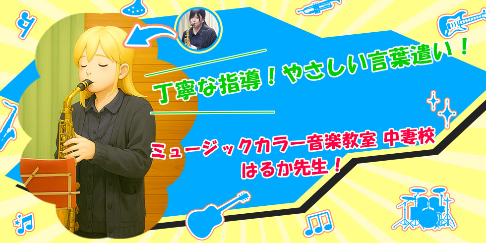 ミュージックカラー音楽教室中妻校には、子ども用のカリキュラムがありますので、幼稚園年長くらいからサックスのレッスンができます!