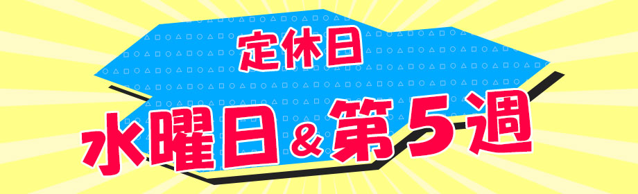 定休日は、毎週水曜日と毎月カレンダーの第5週目です!