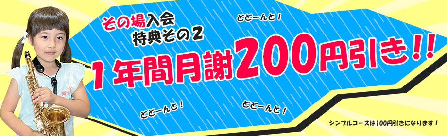 体験レッスンその場のご入会で「入会金が半額」と「1年間お月謝が200円引き」になります!総額最大10,650円お得になるキャンペーンですので、ぜひ体験レッスンその場でご入会くださいませ!
