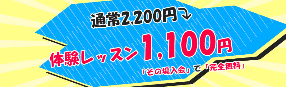 さらに、体験レッスン「その場」でご入会いただくと、体験レッスンが完全無料となります!