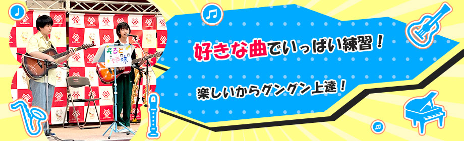 ミュージックカラー音楽教室は、生徒さんの「好きな曲」や「目標の曲」でレッスンをしています!ギターでしてみたい曲やみなさんの好きな曲を教えてください!