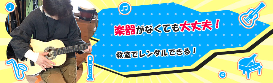 ギターをもっていなくても大丈夫!教室の楽器をお貸ししますし、ギター購入のサポートも行っています!