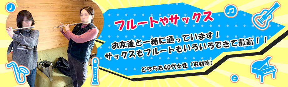 どの楽器にしようかな?と迷っている方のために、「サックス&フルート」や「ピアノ&ギター」、「サックス&ギター&トランペット」などいろいろな楽器を掛け持ちしてもOK!