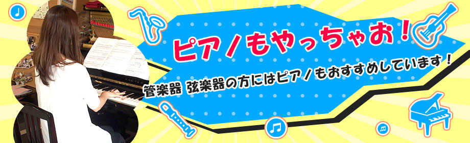 音楽の基礎や理論を学びたい方のために、サックスやギターなどの管楽器、弦楽器のレッスンにはピアノのレッスンもおすすめしています!