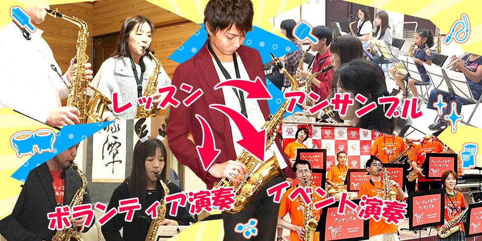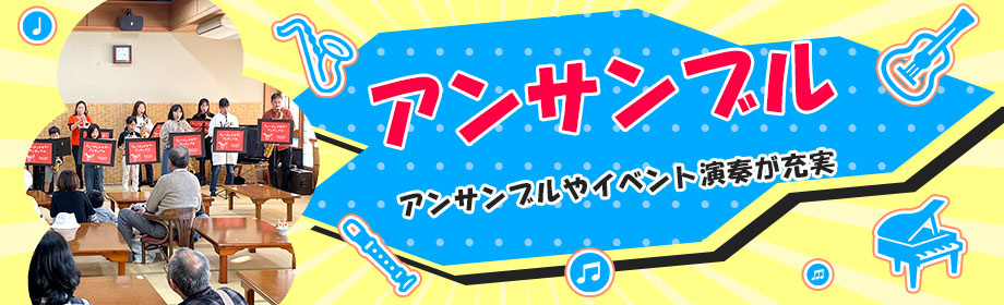 楽器のレッスンだけでなく、アンサンブルやボランティア演奏、イベント演奏をご用意しています!