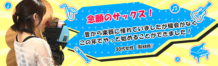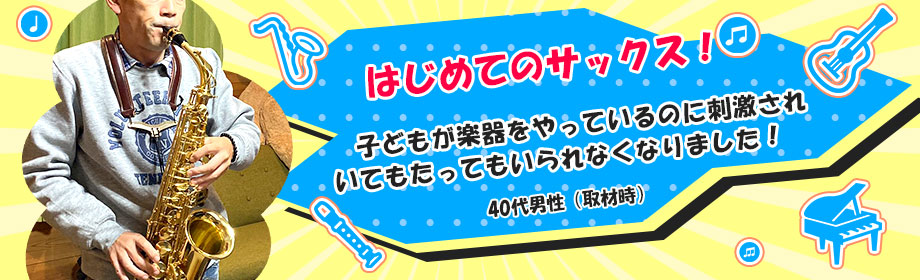 子どもが吹奏楽部で楽器をしており自分も刺激を受けてサックスを始めました。楽器の組み立て方や構え方から丁寧に教えてもらえるので安心です!
