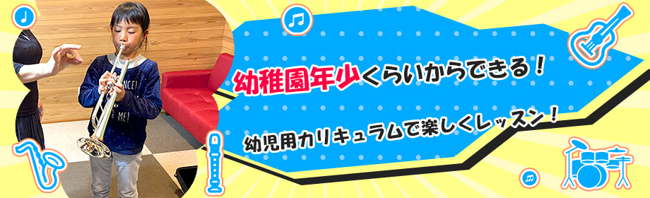 ミュージックカラー音楽教室には、子ども用のカリキュラムがありますので、幼稚園年少くらいからトランペットのレッスンができます!