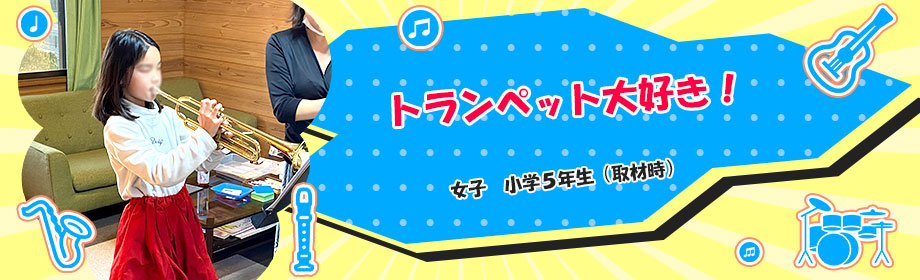 トランペットは難しいけれど、先生が優しく教えてくれるので楽しく吹けています!