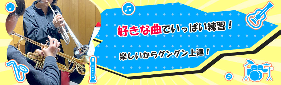 ミュージックカラー音楽教室は、生徒さんの「好きな曲」や「目標の曲」でレッスンをしています!トランペットでしてみたい曲やみなさんの好きな曲を教えてください!