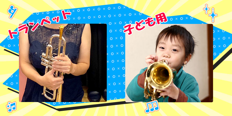 トランペットは通常の大きさを大人用とすれば、半分くらいの大きさの子ども用トランペットがあります!
